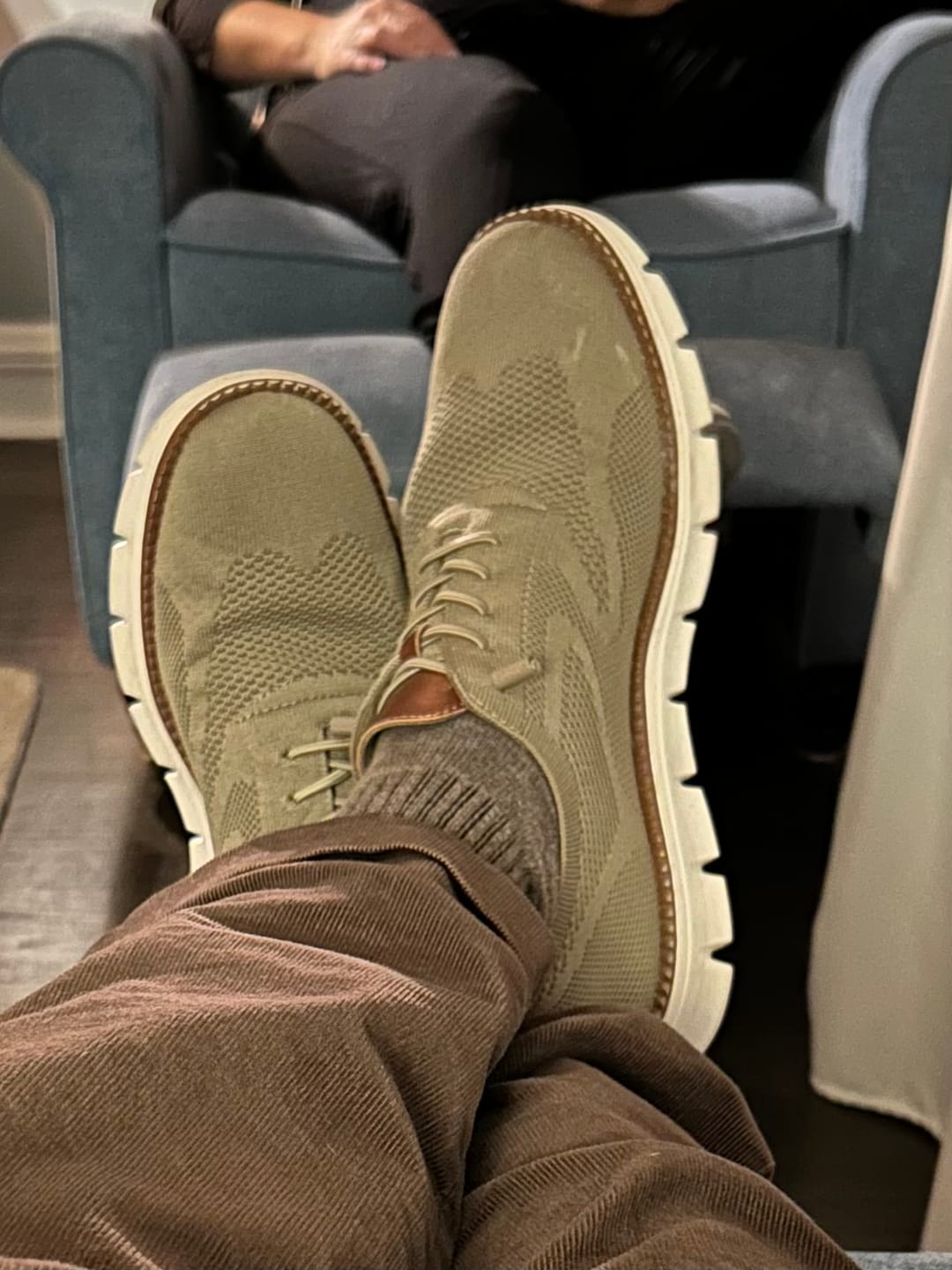 I spend all day on my feet at work and used to come home sore. These shoes feel like sneakers inside. Zero foot pain, even after long meetings and walking downtown.